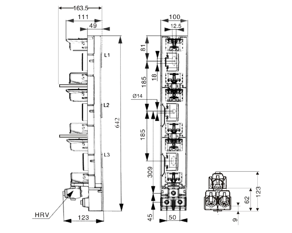 Model 185mm-SystemLMHR-250S LMHR-400S LMHR-630S 熔斷器尺寸