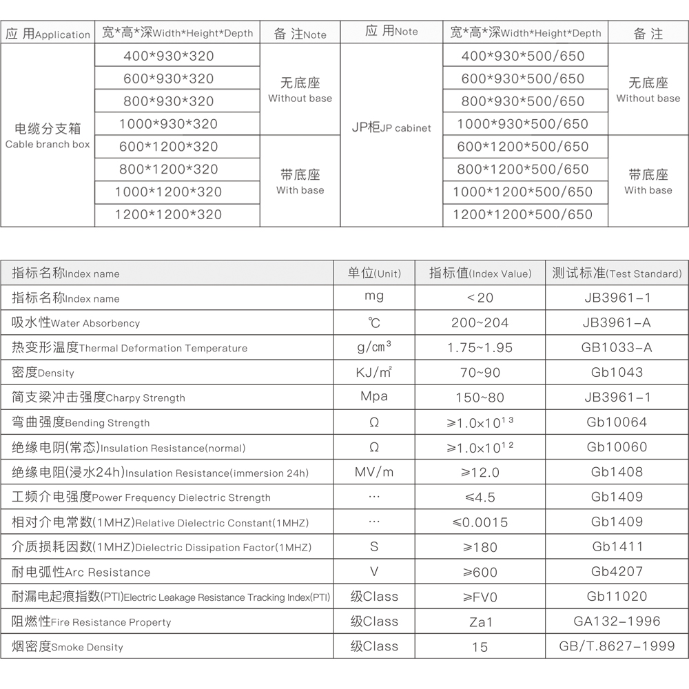 SMC玻璃纖維增強不飽和聚酯箱體,采用新型高性能材料加工制造,具備普通材料所不具有的有點,尤其是它環保、美觀、無光污染的特性,更是適應了當今社會所提倡的創建節能環保型社會的潮流。該箱體具有絕緣性強、耐化學腐蝕、阻燃絕熱、韌性好等諸多優點。