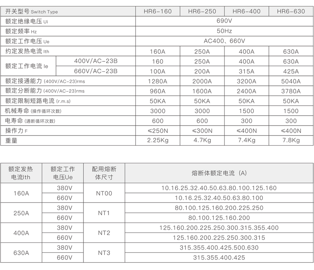 LMHR6系列熔斷器式隔離開關(以下簡稱開關),適用于交流50Hz、額定電壓至690V、約定發熱電流至630A的具有高段路電流的配電電路和電動機電路中,用于手動不頻繁操作的電源開關、隔離開關和應急開關,并作電路短路保護之用,但一般不作為直接開閉單臺電動機之用。開關造型美觀,新穎簡單,操作方便。